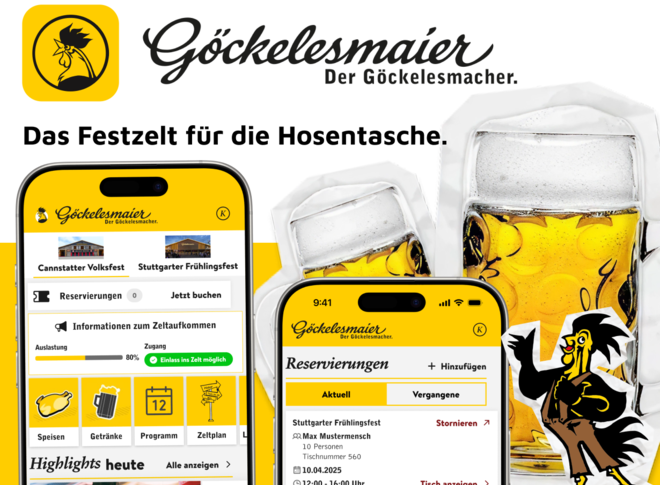 Als eines der bekanntesten Festzelte auf dem Stuttgarter Wasen setzt Göckelesmaier auf eine individuell entwickelte digitale Lösung zur Unterstützung von Service und Organisation. Die App bietet eine eigene Ansicht für VIP-Gäste mit ausgewählten Funktionen und exklusivem Design. Reservierungen lassen sich direkt über die App anlegen, verwalten und steuern, wodurch Abläufe für Gäste und Team deutlich vereinfacht werden. Ergänzend sorgen Funktionen zur transparenten Auslastungssteuerung, wie z.B. einer Live-Auslastungsanzeige.