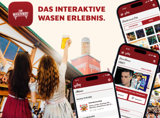 Im Traditionszelt „Zum Wasenwirt“ erweitert eine individuell entwickelte App das Live-Erlebnis im Zelt um interaktive, digitale Funktionen. Gäste werden aktiv ins Geschehen eingebunden und können das Festzelt-Erlebnis über ihr eigenes Smartphone mitgestalten. Über Features wie „Schenk mir ein Foto“ lassen sich Bilder direkt auf die Leinwand im Zelt spielen, während Song-Votings die Musikauswahl interaktiv beeinflussen. Der Zeltfunk verwandelt das Smartphone in eine visuelle Anzeigefläche, die ideal für einfache Bestellungen oder Signale in einer lauten Umgebung ist. So wird das Festzelt Erlebnis um eine neue digitale Ebene ergänzt.