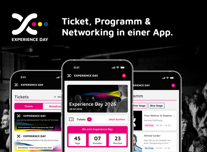 Der Experience Day bringt jährlich Führungskräfte und Verantwortliche aus Digital, Tech und Business zusammen. Erstmals wird 2026 Event-Standard-Software durch eine individuelle App ersetzt. Dies eröffnet neue Chancen im Bereich Teilnehmerkommunikation, Ticketing und Networking und erleichtert interne Abläufe immens.